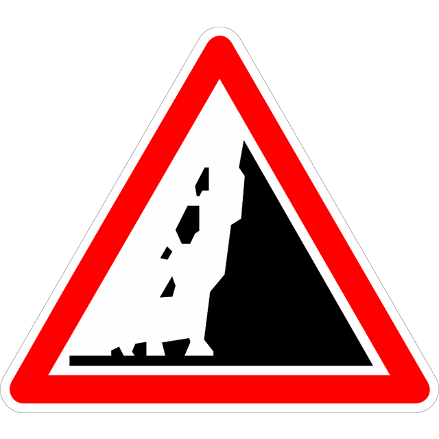 📍 Risque de chute de pierres ou de présence sur la route de pierres tombées.